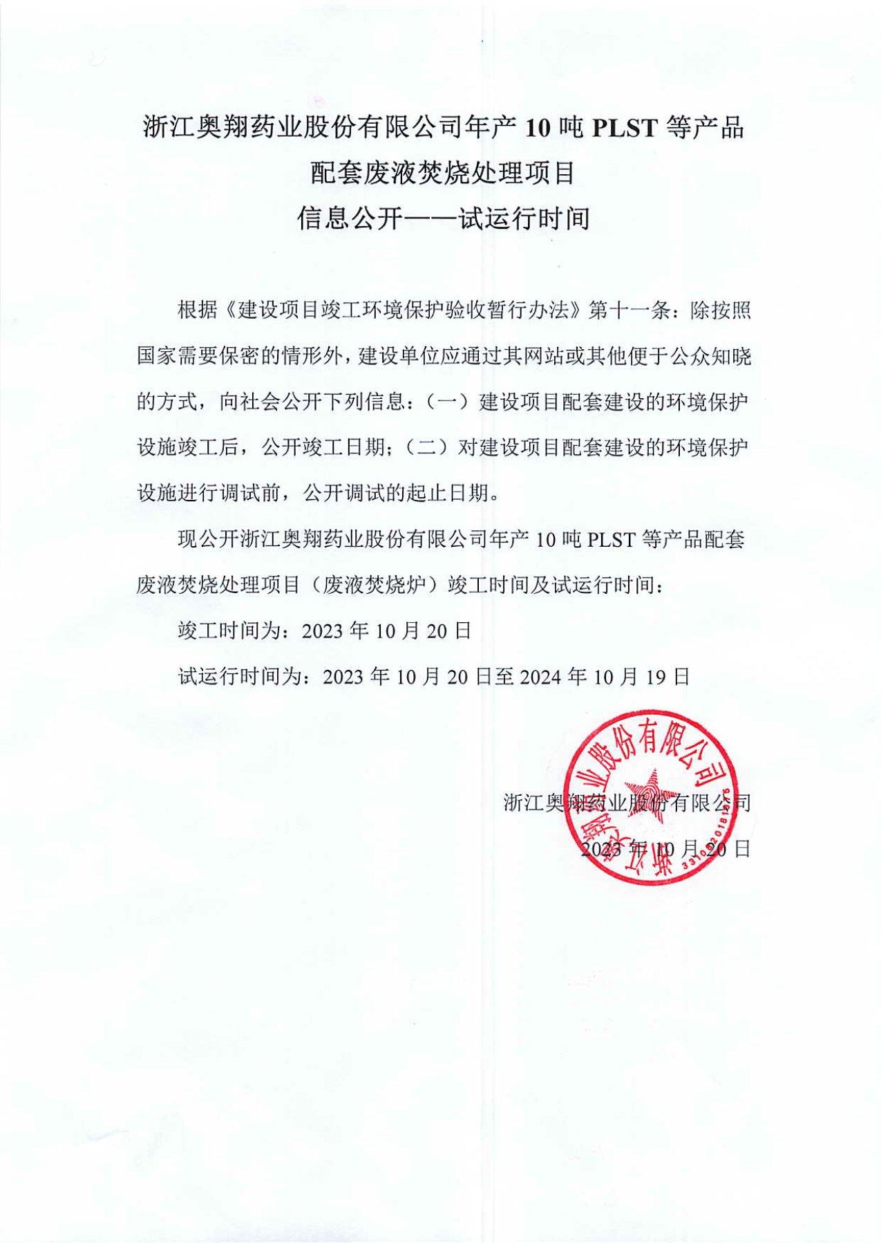 乐鱼网页版·官方站网站年产10吨PLST等产品配套废液焚烧处理项目试生产公示